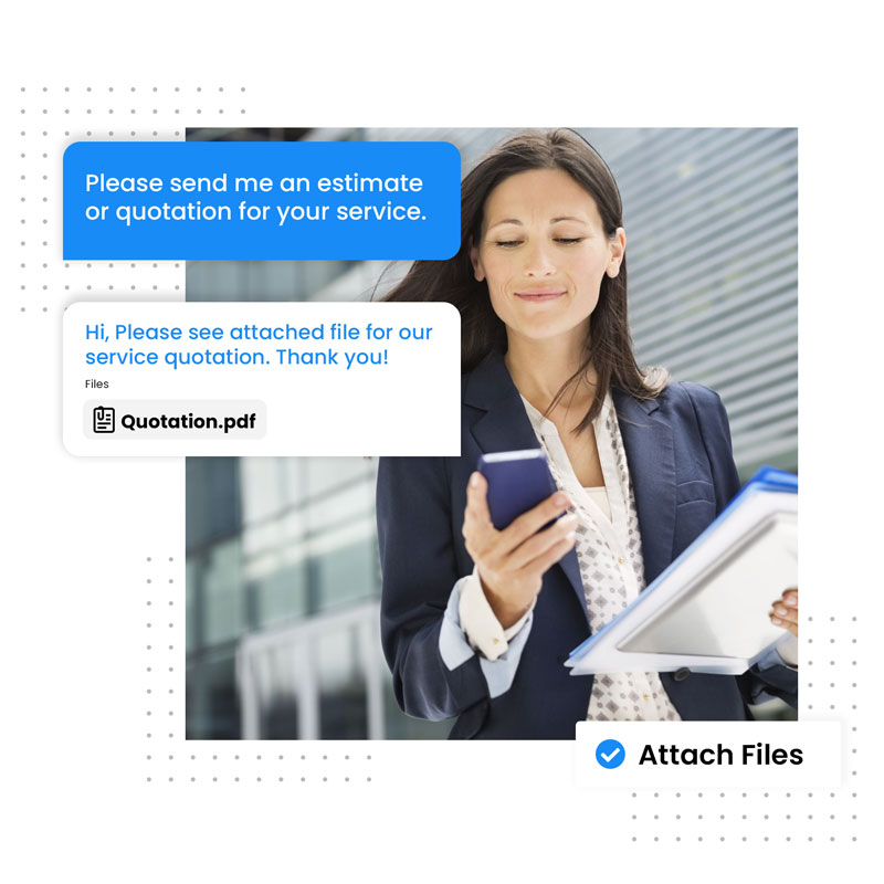 Media Shield 2-way Texting Feature in CRM is a great tool for small businesses. Our 2-way texting feature is a convenient system where you can easily send one-page sales pitches, quotes, or even upload photos.