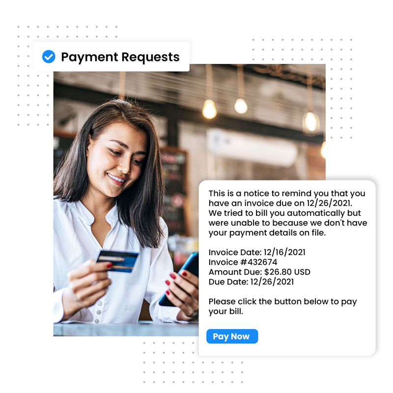 Imagine the possibilities with just one tap. Small businesses can request payments from their customers with our CRM system. It's easy and hassle-free - perfect for small businesses.
