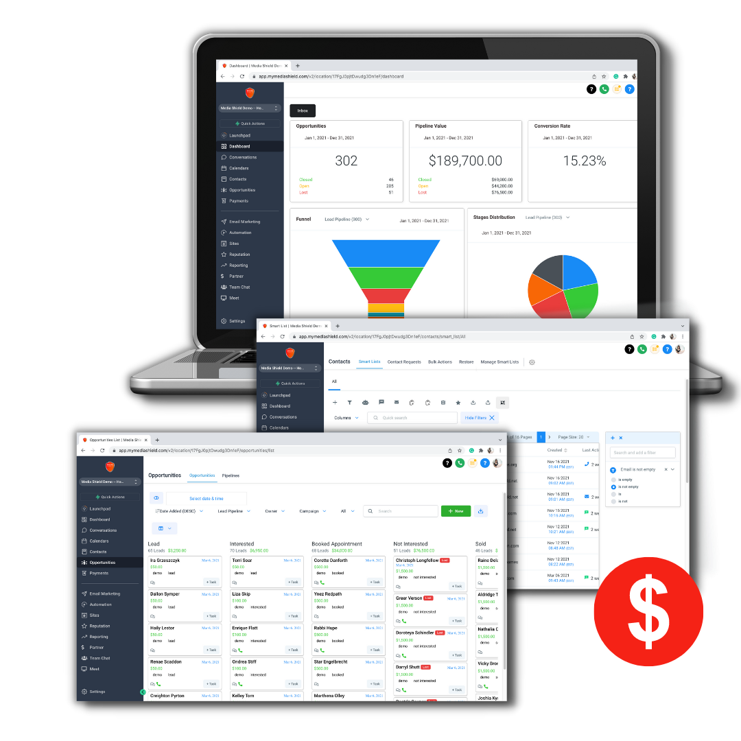 Our All-in-One CRM is the most convenient way for your business to manage sales. Take advantage of consultation services and the marketing solutions we provide that create long-term customer relationships. Worry Less, Sell more by using Media Shield’s SaaS for small businesses.